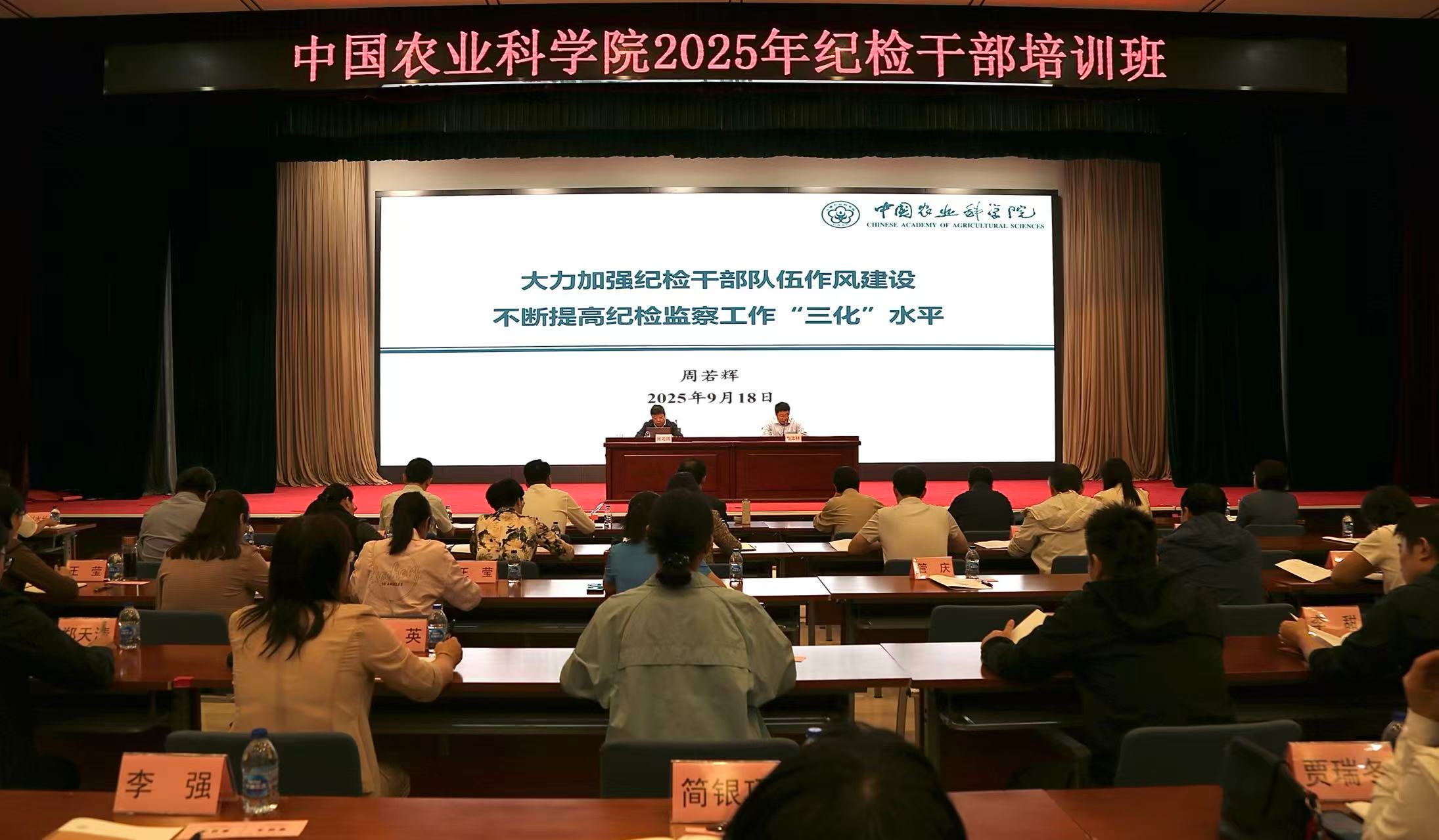 为落实纪检监察工作规范化法治化正规化建设重要要求,切实提升纪检干部队伍能力素质,中国农业科学院于9月18日至19日成功举办2025年纪检干部培训班。院纪检组组长周若辉出席会议并讲授专题党课。
