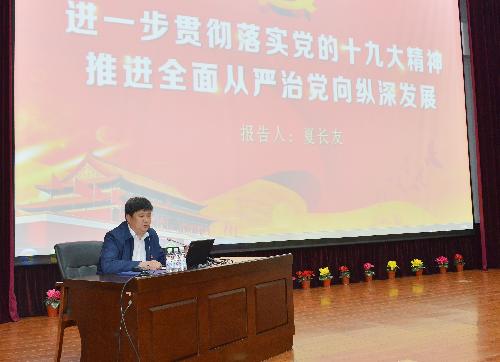 夏长友从“党的十九大关于全面从严治党的战略部署”开篇,深刻阐述了当前全面从严治党、党风廉政建设和反腐败斗争的形势以及当前和今后一个时期的主要任务。